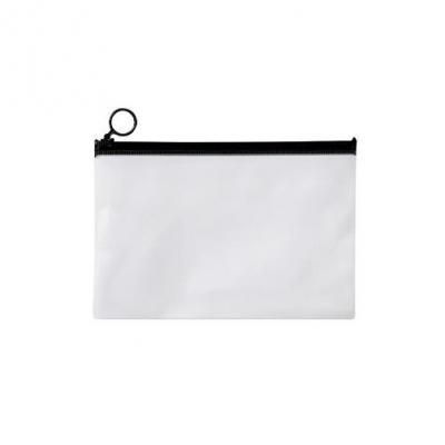 半透明なのでポーチの中身を確認することができます。イヤホンなどの小物やリップなどのメイク用品を入れるのに便利なサイズ感です。【本体サイズ】:220×150(mm)【素材】:EVA 他【色・柄・種類】:OPP袋、台紙【パッケージサイズ】:【名入れ可能サイズ】:シルク:W150×H80(mm) インクジェット:W150×H80(mm)【備考】:取説付(台紙面)【最小ご注文数量】:44個以上1個単位