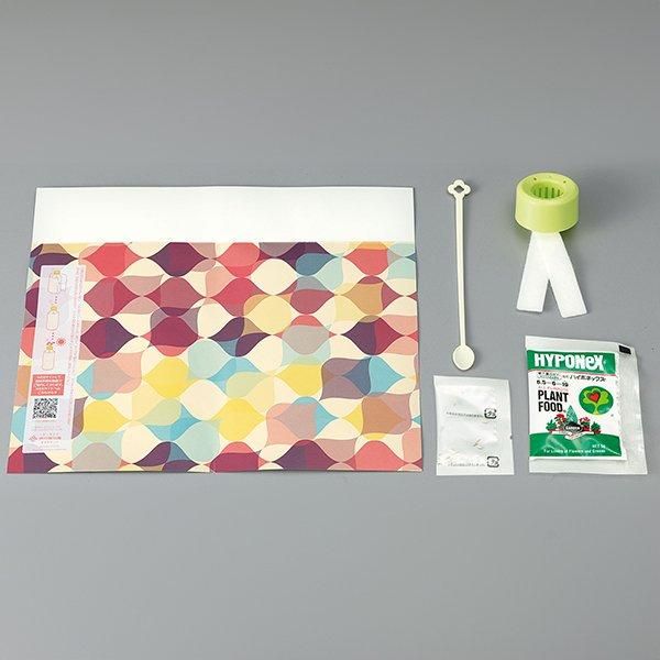 ペットボトルで育てる!キッチンやリビングなどで、育てて食べる!ペットボトルを利用する手軽な水耕栽培セットです。【本体サイズ】:セット内容:種子、肥料、キャップ、スプーン、遮光シート【素材】:バジル、ミニトマト、リーフレタス、ルッコラ【色・柄・種類】:4種均等アソート※色・柄はご指定いただけません。【個装形態】:袋【パッケージサイズ】:10.5×15×3cm【名入れ可能サイズ】:【備考】:受注後最短で2〜3営業日後の発送です。【最小ご注文数量】:100個以上100個単位