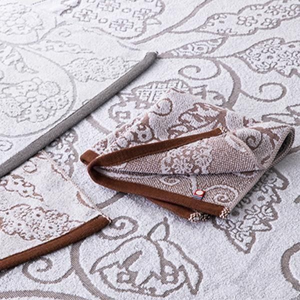 異国情緒あふれるエキゾチックな更紗模様をシックで味わい深いデザインでタオルに表現しました。【本体サイズ】:32×73cm【素材】:綿100%【色・柄・種類】:ブラウン【個装形態】:裸【パッケージサイズ】:【名入れ可能サイズ】:【備考】:【最小ご注文数量】:30個以上10個単位