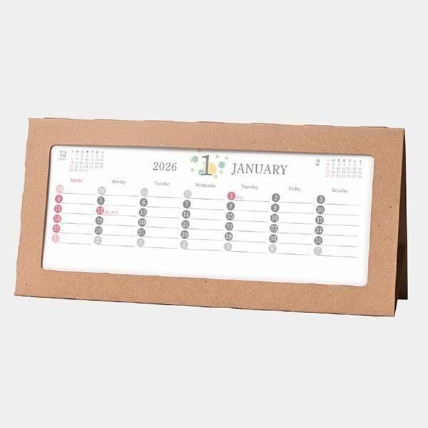 【1色印刷費用込み】読んで字のごとく、封筒で送れる卓上カレンダーです。長3封筒のサイズにマッチしており、A4の送付状と一緒に封入しても50g以内(※)に収めることが出来ます。※同封される用紙の重さによって変わります。本製品+封筒込みで約45gです。【本体サイズ】:H99×W213mm 【素材】:本文:マットコート〈135〉 ケース:エースボール〈21.5〉【色・柄・種類】:【個装形態】:専用袋付き(添付)【パッケージサイズ】:H230×275×380mm【名入れ可能サイズ】:H12×W172mm以内【備考】:表紙・本文4/4 7枚【最小ご注文数量】:75個以上1個単位