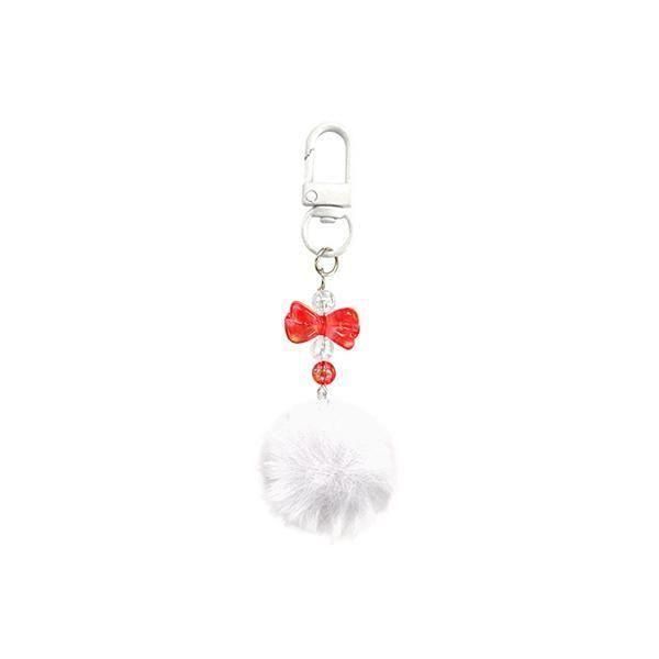 ふわふわしたポンポンがついたキーホルダーです。6種類ありますが、どれもパステルカラーでとってもかわいいんです!