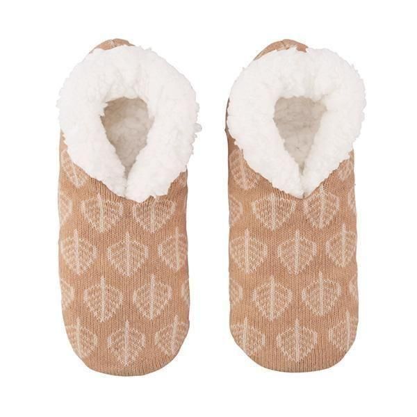 細かなリーフ柄が印象的。内側にボア生地を使った2重生地で温かさに包まれるソックスです。