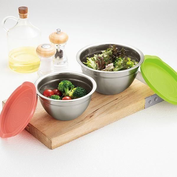 下ごしらえして冷蔵庫保存など調理で大活躍!フタ付きステンレスボウル2サイズセットです。