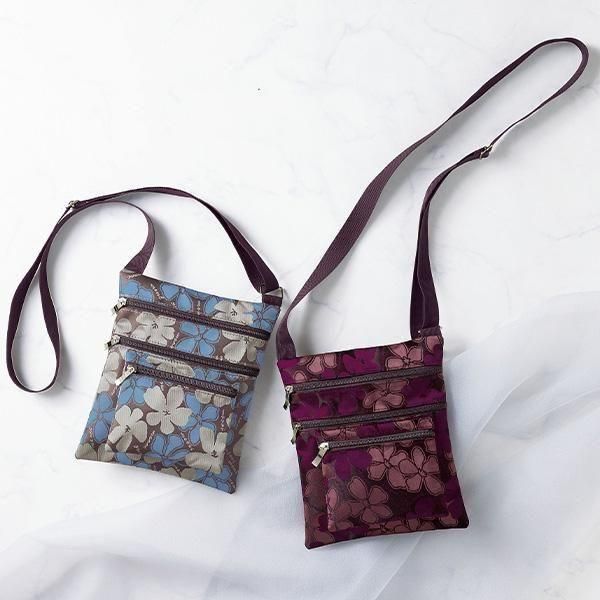エレガントな花柄ジャガードのポシェット。ファスナーポケットが多く、旅行やお出かけに最適です。【本体サイズ】:約20.5×24cm ショルダーの長さ138cm【素材】:ポリエステル【色・柄・種類】:2色均等アソート※色・柄はご指定いただけません。【個装形態】:袋【パッケージサイズ】:【名入れ可能サイズ】:【備考】:【最小ご注文数量】:4個以上2個単位
