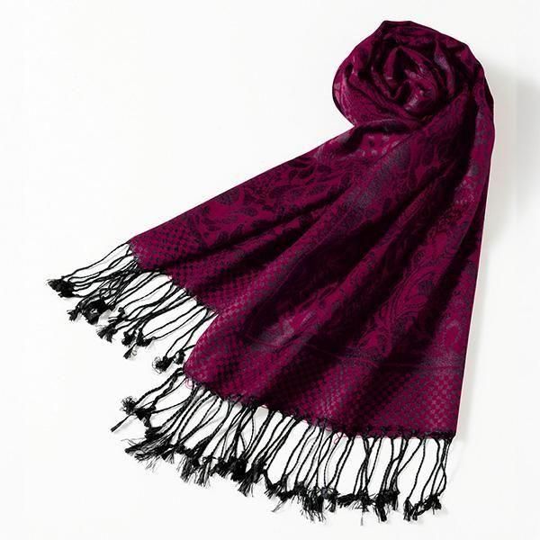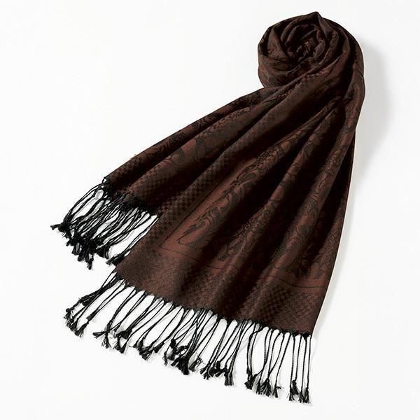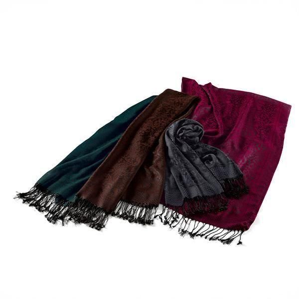装いのアクセントになる4色展開。緻密でエレガントな模様のジャガードストール。