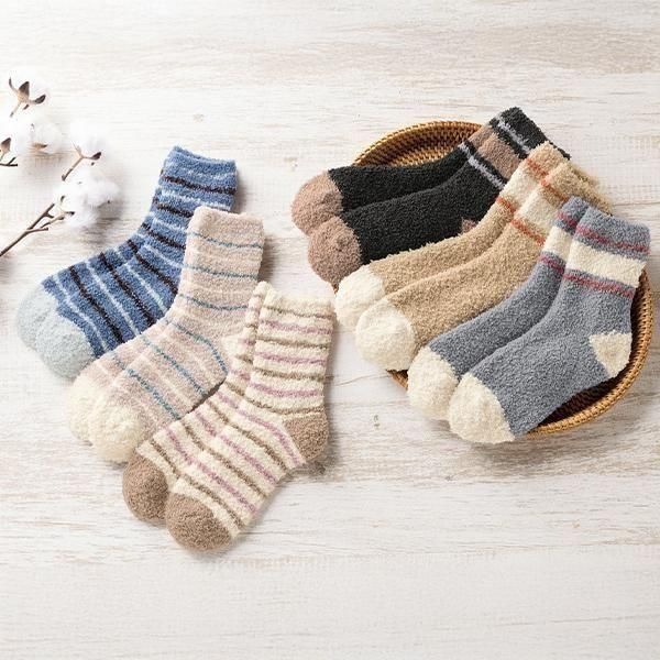 マシュマロタッチでやわらかくて気持ちいい!優しい色使いのふわもこソックスです。【本体サイズ】:約22-25cm対応【素材】:ポリエステル、ポリウレタン【色・柄・種類】:2柄3色均等アソート※色・柄はご指定いただけません。【個装形態】:袋【パッケージサイズ】:【名入れ可能サイズ】:【備考】:【最小ご注文数量】:60個以上12個単位