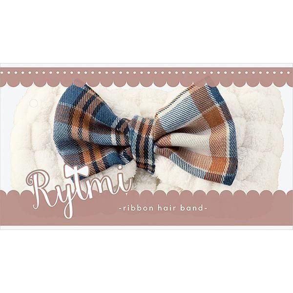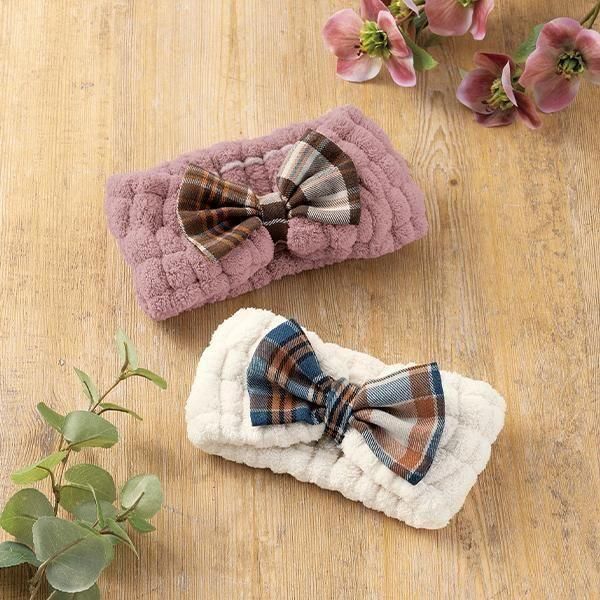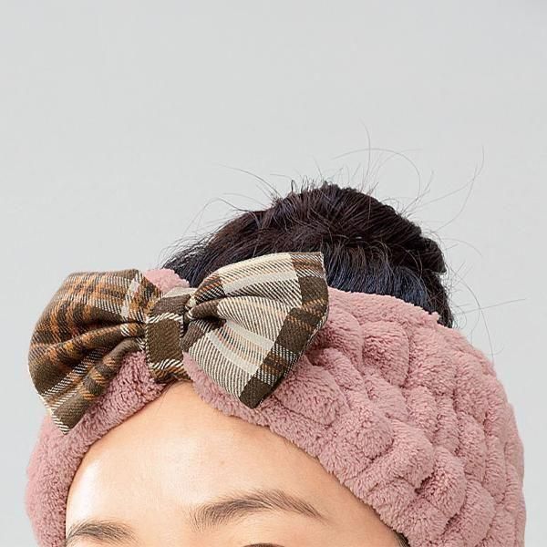 チェックのリボンがかわいいアクセント。肌触りの良いマイクロファイバー素材でフィット感も抜群、メイクや洗顔時に最適です。
