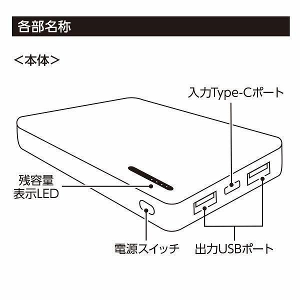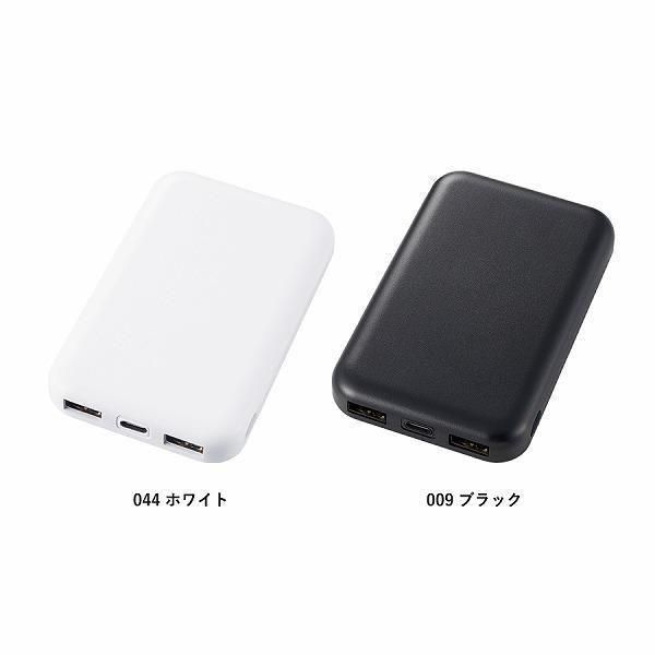 4000mAhとほどよい容量サイズです。出力用USBポートは2口搭載されているため、2台同時充電も可能です。【本体サイズ】:64×102×15(mm)【素材】:ABS他【色・柄・種類】:【個装形態】:エアパッキン、紙箱【パッケージサイズ】:111×70×22mm【名入れ可能サイズ】:シルク:A/W40×H52(mm)B/W40×H75(mm)インクジェット:A/W40×H52(mm)B/W40×H75(mm)W40×H75(mm)【備考】:PSE Type-C対応 取説付、残量表示ランプ付【最小ご注文数量】:8個以上1個単位