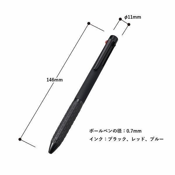 使用頻度の高い3色を内蔵しております。多色ペンの中でもリーズナブルな商品ですので、おくばり案件などにもおすすめです。【本体サイズ】:Φ11×148(mm)【素材】:ABS 他【色・柄・種類】:【個装形態】:印刷あり/OPP袋 印刷なし/OPP袋無【パッケージサイズ】:【名入れ可能サイズ】:インクジェット:W35×H5(mm)【備考】:再生ABS、プリント ペン先の種類(レッド0.7mm、ブルー0.7mm、ブラック0.7mm)【最小ご注文数量】:102個以上1個単位