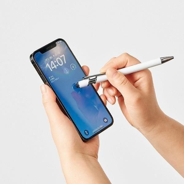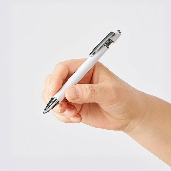 再生素材を使用している高級感のあるスタイリッシュな金属ボールペン。上部にはタッチペンがついておりタブレット操作も可能!【本体サイズ】:144(mm)【素材】:アルミ(ボディ部)、ABS、シリコーンゴム 他【色・柄・種類】:【個装形態】:印刷あり/OPP袋、印刷なし/OPP袋無【パッケージサイズ】:【名入れ可能サイズ】:インクジェット:W85×H5(mm)、レーザー:W40×H4(mm)【備考】:再生アルミ、タッチペン、プリント 対応機器/スマートフォン、タブレットPCなど レーザー印刷:W40×H4(mm)【最小ご注文数量】:63個以上1個単位