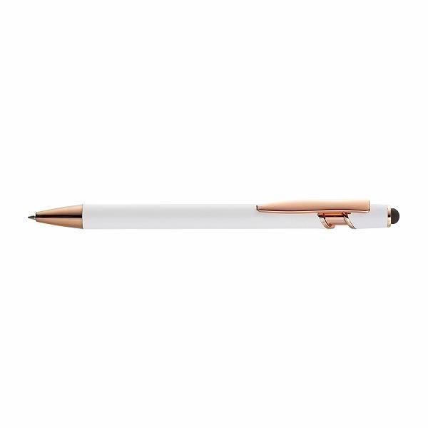 ノベルティ粗品の小ロットン > 文具・ステーショナリー ノベルティ【Ca】 > ペン・筆記用具 > タッチペン付メタルシックボールペン(再生アルミ) ホワイト×ピンクゴールド