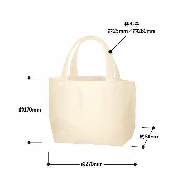 厚すぎず軽量なのでサブバッグにピッタリです。Sサイズ(S〜L有)はお弁当箱などを入れるランチバッグなどにおすすめです。【本体サイズ】:本体/約270×170×80(mm) 持ち手/約25×280(mm)【素材】:コットン【色・柄・種類】:【個装形態】:10枚/PP袋【パッケージサイズ】:【名入れ可能サイズ】:シルク:W210×H90(mm) インクジェット:W210×H90(mm) 熱転写・DTF:W210×H90(mm) 【備考】:エコマーク(無漂白) 約8oz【最小ご注文数量】:39個以上1個単位