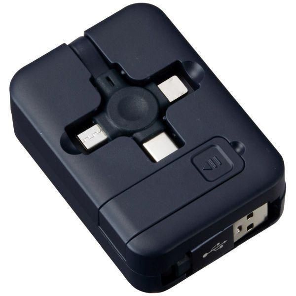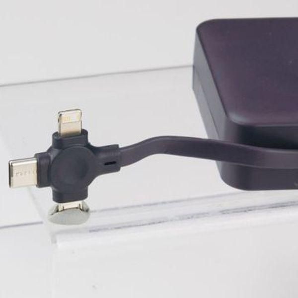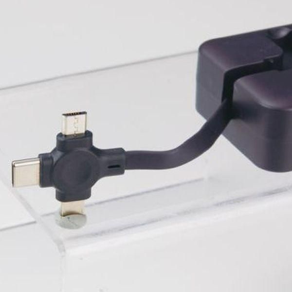 スマホが置けるスタンド機能付きで、3種の端子が一体化したマルチな充電ケーブル。持ち運びに便利で実用性抜群のアイテムです。コンパクトにまとまって持ち運びも楽々。