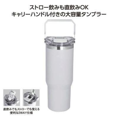 車のドリンクホルダーにセットができ、持ち運びも便利なハンドル付きの大容量タンブラーです。ストローと直飲みができる2WAYタイプです。