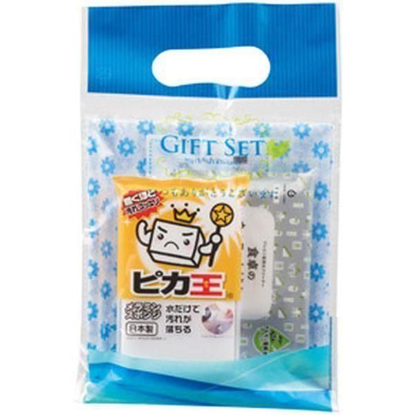 毎日使うキッチンの掃除アイテム3点を手提げ袋にセットした手頃な価格のプチギフトです。ちょっとしたご挨拶にもぴったり。【本体サイズ】:【素材】:【色・柄・種類】:【個装形態】:包装袋【パッケージサイズ】:270×165×25mm【名入れ可能サイズ】:【備考】:セット内容/洗って使える!不織布クロス1枚・ピカ王ミニ・食卓のちょこっと拭きシート5枚【最小ご注文数量】:100個以上100個単位