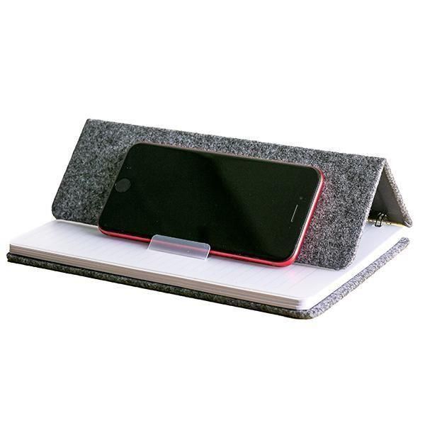 スマホスタンドにもなる、再生紙利用のエコなノート。使いやすいA5サイズ。【本体サイズ】:約210×155×19mm【素材】:紙、ポリエステル、ポリプロピレン【色・柄・種類】:【個装形態】:OPP袋【パッケージサイズ】:約210×190×20mm【名入れ可能サイズ】:H50×W50mm【備考】:ページ数:約80枚。【最小ご注文数量】:38個以上1個単位