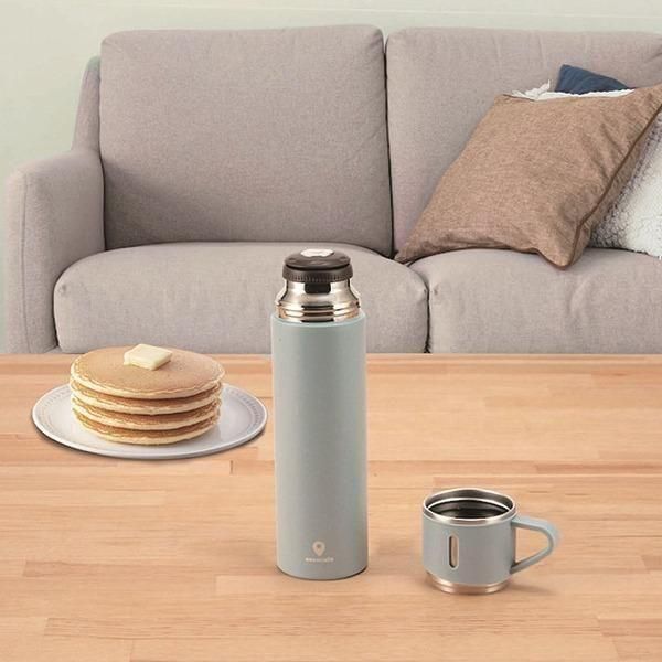 ココカフェ コップ付き真空二重ボトル 450ml スモークブルー