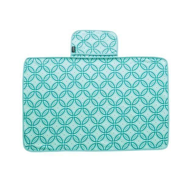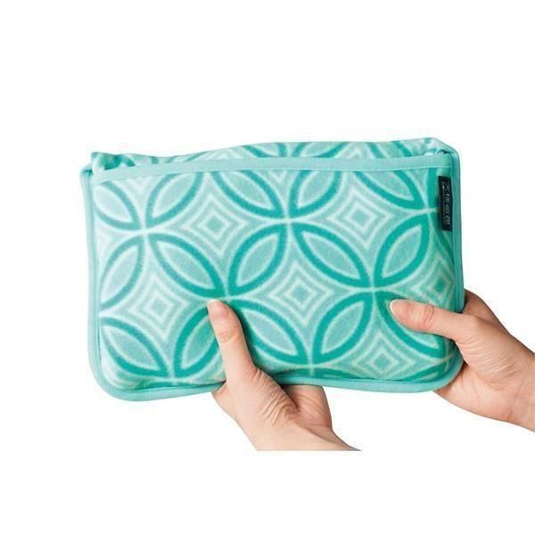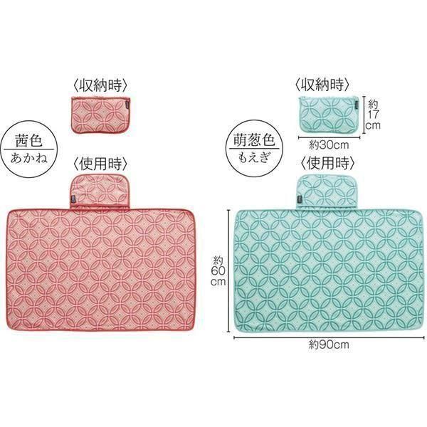 茜色ともえぎ色の2色が和の雰囲気を醸し出し、「七宝文様」は商売繁盛や円満、縁繋ぎの願いを表現しています。ポケットに収納できるコンパクトサイズのブランケットです。
