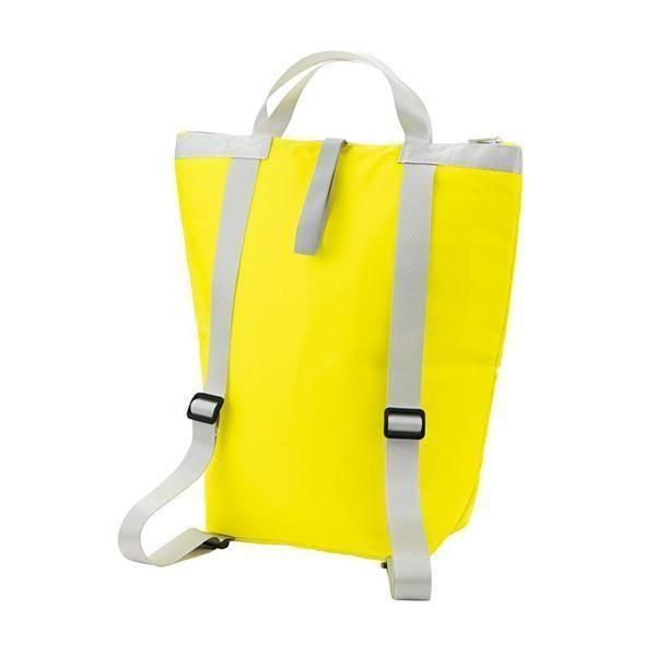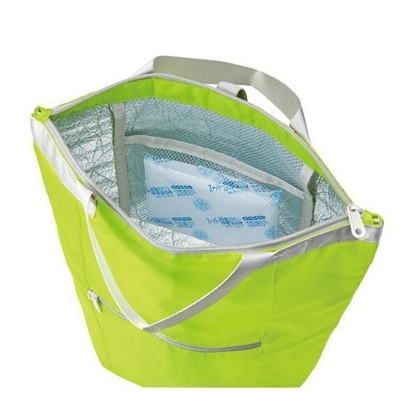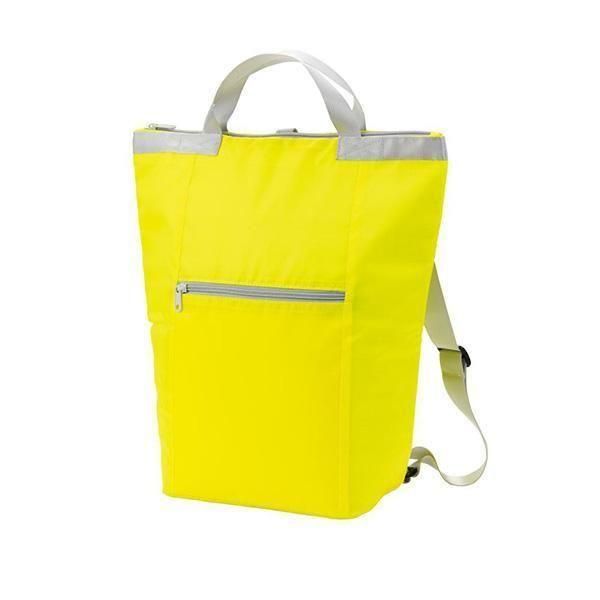 手持ちとリュックの2WAY。自転車での買い物もラクラクです。縫い付けのゴムバンドで小さくまとめられるので持ち歩きにも便利。内側には保冷剤用メッシュポケット付き。