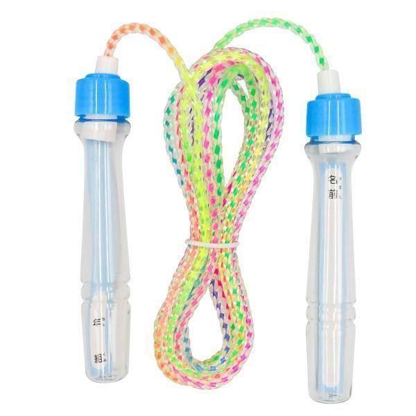 長さ調節が簡単なので、お子様の成長に合わせて使用できます。【本体サイズ】:ロープの長さ約2.5m【素材】:塩化ビニル樹脂、ナイロン、ポリプロピレン、PET、パルプ【色・柄・種類】:2色アソート ※色・柄はご指定いただけません。【個装形態】:袋入り【パッケージサイズ】:235×113×25mm【名入れ可能サイズ】:【備考】:名札付【最小ご注文数量】:84個以上12個単位
