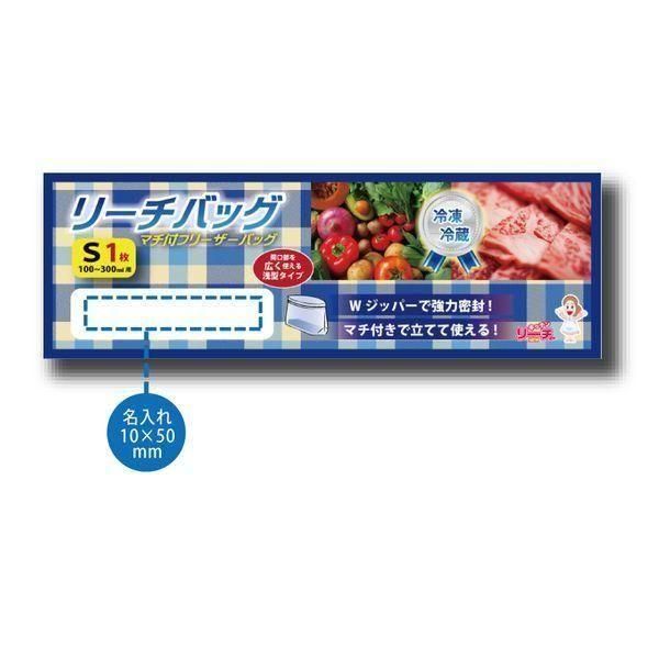 1ケースより名入れできます。【本体サイズ】:幅160×深100×マチ40mm【素材】:ポリエチレン【色・柄・種類】:【個装形態】:OPP袋入【パッケージサイズ】:60×170×3mm【名入れ可能サイズ】:10×50mm【備考】:内容/マチ付フリーザーバッグS×1枚 【最小ご注文数量】:423個以上1個単位