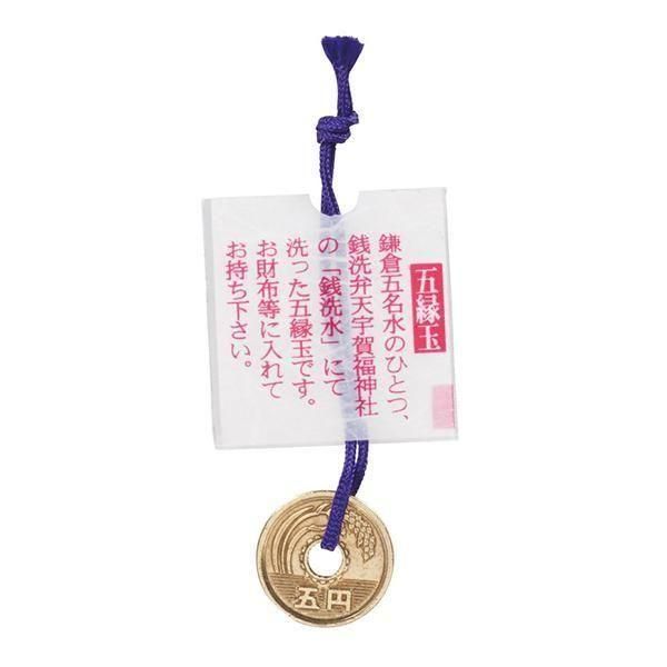 干支柄の金太郎飴と招き猫の飴をセットにしたお年賀にぴったりのキャンディです。銭洗弁天でお清めした5円玉の根付付きです。