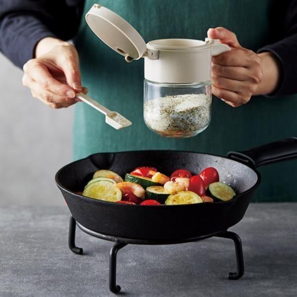 フタを開けてスプーンですくうだけでなく、逆さまにして直接振りかけることもできる、便利で機能的なガラス製の調味料ポットです。【本体サイズ】:本体/φ81×126mm、スプーン/全長:98mm【素材】:PP・ガラス・シリコン【色・柄・種類】:【個装形態】:化粧箱【パッケージサイズ】:130×110×110mm【名入れ可能サイズ】:パッド/25×25mm、インクジェット/25×30mm【備考】:容量/250ml【最小ご注文数量】:28個以上1個単位
