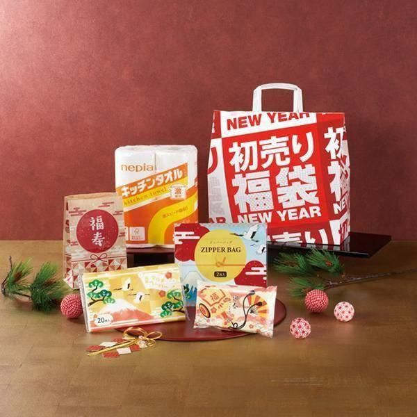 新年の福を呼ぶ干支袋。中身は実用アイテム満載でこの価格!完売必至の人気商品。ご注文はお早めに!【本体サイズ】:紙袋/310×320×115mm【素材】:【色・柄・種類】:【個装形態】:透明袋(紙袋同梱)【パッケージサイズ】:【名入れ可能サイズ】:【備考】:【最小ご注文数量】:24個以上24個単位