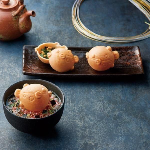 可愛いふぐの最中が印象的なお茶漬け。お椀に浮かべるだけのお手軽さ。【本体サイズ】:【素材】:【色・柄・種類】:【個装形態】:化粧箱【パッケージサイズ】:130×110×100mm【名入れ可能サイズ】:【備考】:内容量:茶漬×2(梅・海苔)、焼津産かつお本枯節削り×3、賞味期間:製造日より常温180日【最小ご注文数量】:8個以上1個単位