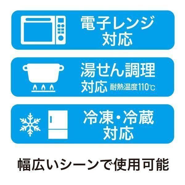 マチ付きなのでたっぷり入って使い勝手も抜群。食品検査済みなので、食品の分別や保存はもちろん、冷凍・冷蔵保管にも安心してお使いいただけます。さらに耐熱温度は110℃あり、湯せん調理でも活躍します。