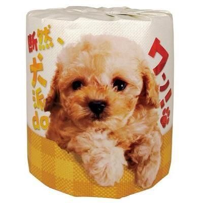 かわいい仔犬の写真と肉球柄入り。ちょっとしたプレゼントや景品におすすめです。【本体サイズ】:約11.4cm×30m(2枚重ね)【素材】:再生紙【色・柄・種類】:【個装形態】:紙巻【パッケージサイズ】:約直径10×11.5cm【名入れ可能サイズ】:【備考】:プリントあり【最小ご注文数量】:100個以上100個単位