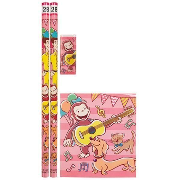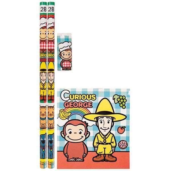 鉛筆、消しゴム、メモ帳が一緒になった文具セットです。みんなに愛されているおさるのジョージが可愛らしくデザインされています。