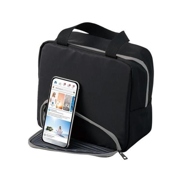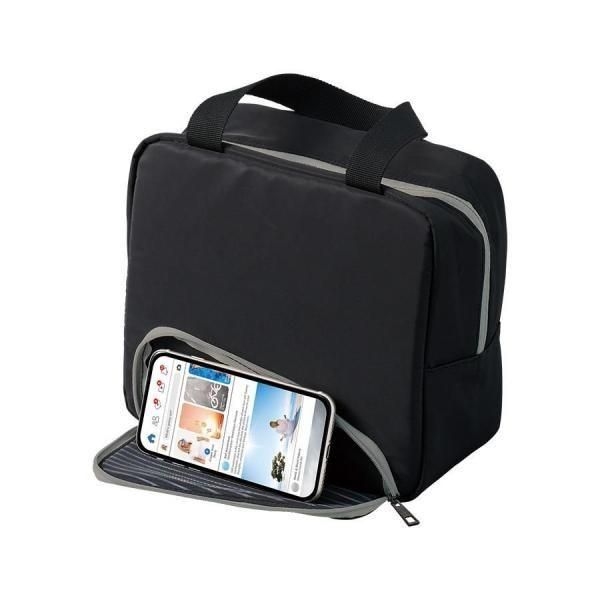 前面のファスナーを開けるとスマホを引っかけて立たせることが出来る、新感覚のランチバッグです。断熱性のあるクッション材でしっかり保冷し、スマホが自立するのでランチをしながら動画やSNSを楽に楽しむことが出来る優れものです!【本体サイズ】:本体/約220×190×105(mm) 持ち手/約25×290(mm)【素材】:ポリエステル、ポリエチレン、EVA他【色・柄・種類】:【個装形態】:【パッケージサイズ】:-【名入れ可能サイズ】:熱転写:W120×H85(mm)【備考】:【最小ご注文数量】:8個以上1個単位
