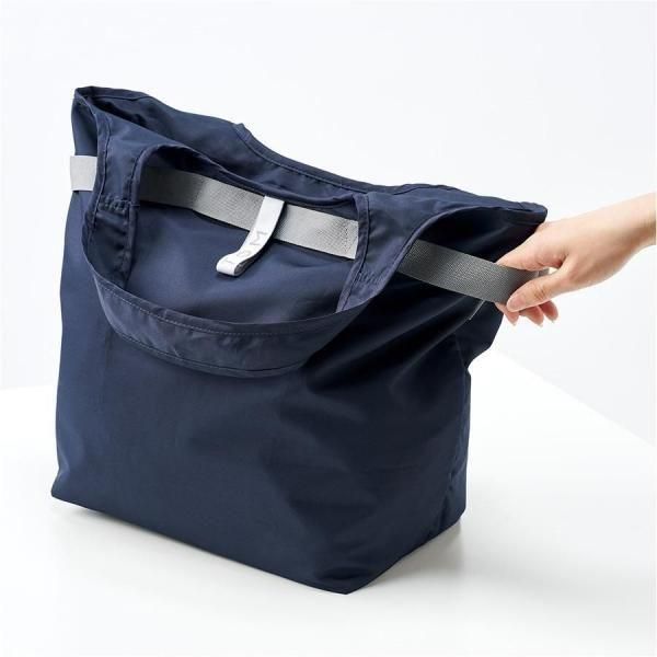 セルフレジで使いやすい、お買い物に便利な保冷バッグです。ゴムでコンパクトに畳めるだけでなく、内側に保冷材用のポケットがあるので冷凍食品も安心して持ち帰れます。大きめサイズなのでたっぷり入るのも嬉しいポイント!