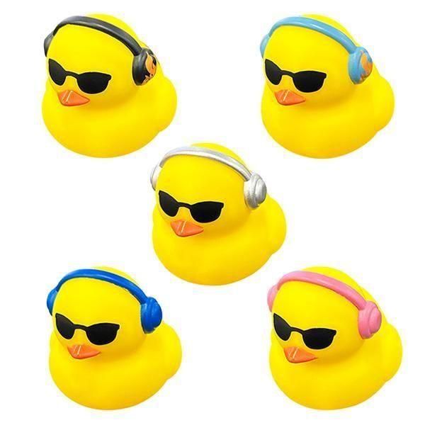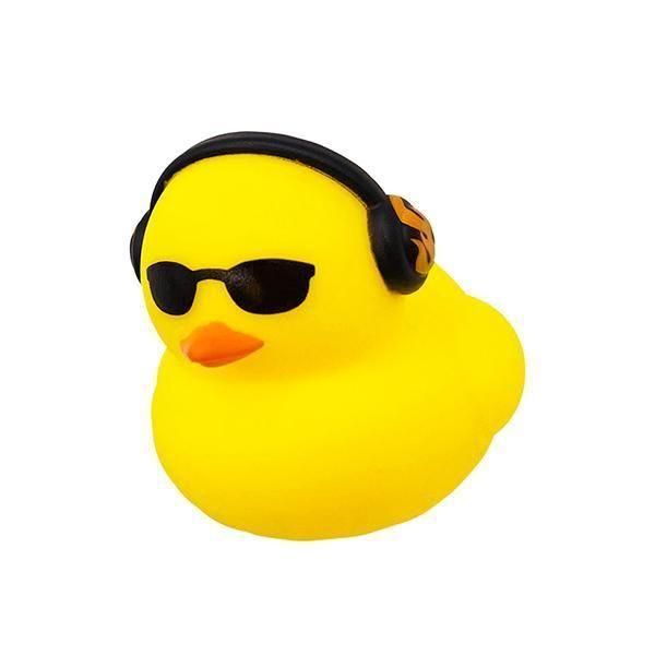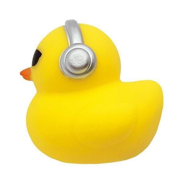 ヘッドフォンをつけたアヒルのスクイーズです。水に浮かび、指でつまむとピーッ!と音がします。お色はブラックとイエローの2色です。