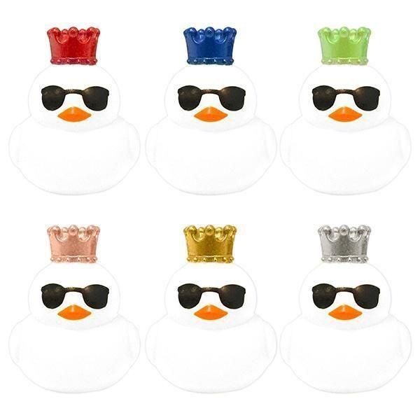 王冠をかぶった白いアヒルのスクイーズ。水に浮かび、指でつまむとピーッ!と音がします。サングラスをかけたアヒルとつぶらな瞳のアヒルがいます。【本体サイズ】:約W4×W5×D4cm【素材】:【色・柄・種類】:12種アソート ※色・柄はご指定いただけません【個装形態】:50個で大きい袋入り【パッケージサイズ】:【名入れ可能サイズ】:【備考】:【最小ご注文数量】:300個以上300個単位