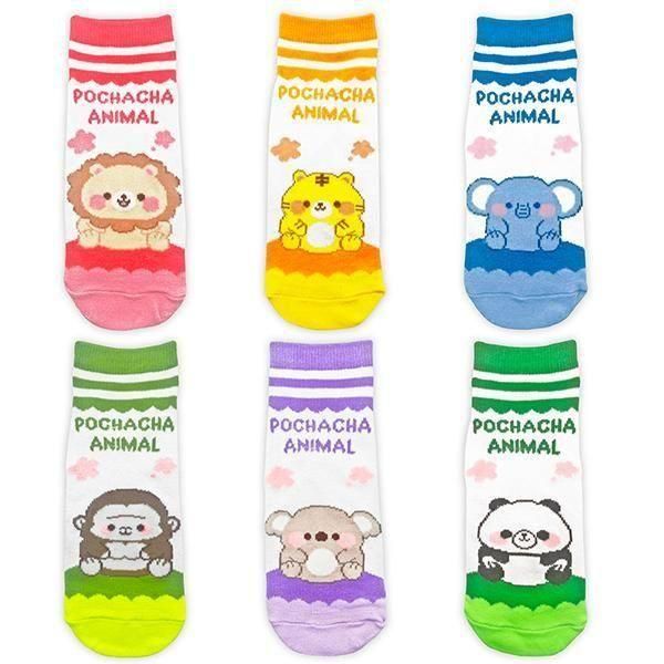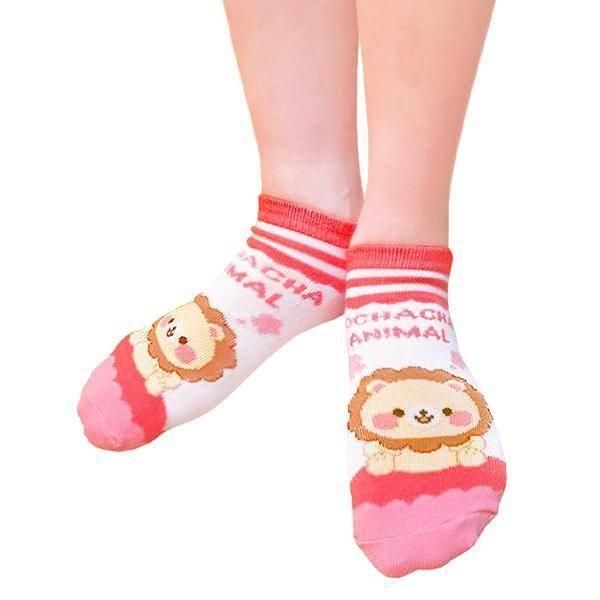 ぽちゃちゃアニマルの足首丈の靴下です。履くと足の甲にアニマルたちがくるデザインになっています。対応サイズは20〜24cm。