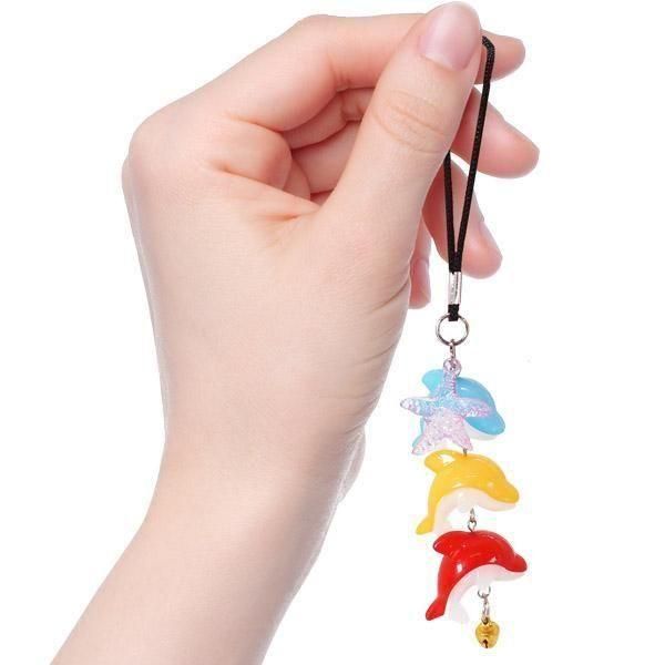 イルカが3つ連なったストラップ!夏の景品やお土産にぴったりな涼しいデザイン。