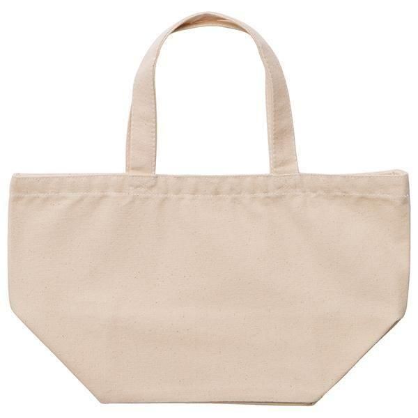 頑丈でしっかりしたキャンバス生地を使ったランチバッグです。ちょっとしたお出かけにぴったりのミニサイズ!【本体サイズ】:高さ21×袋口幅37×底幅20×奥行(マチ)17cm ハンドル長37cm【素材】:綿 100% キャンバス(約11.5オンス)【色・柄・種類】:ナチュラル【個装形態】:裸【パッケージサイズ】:【名入れ可能サイズ】:W10×H10cm【備考】:内容量/約7L ※019.ナチュラルは、環境に配慮し漂白工程をなくした無漂白商品です。【最小ご注文数量】:13個以上1個単位